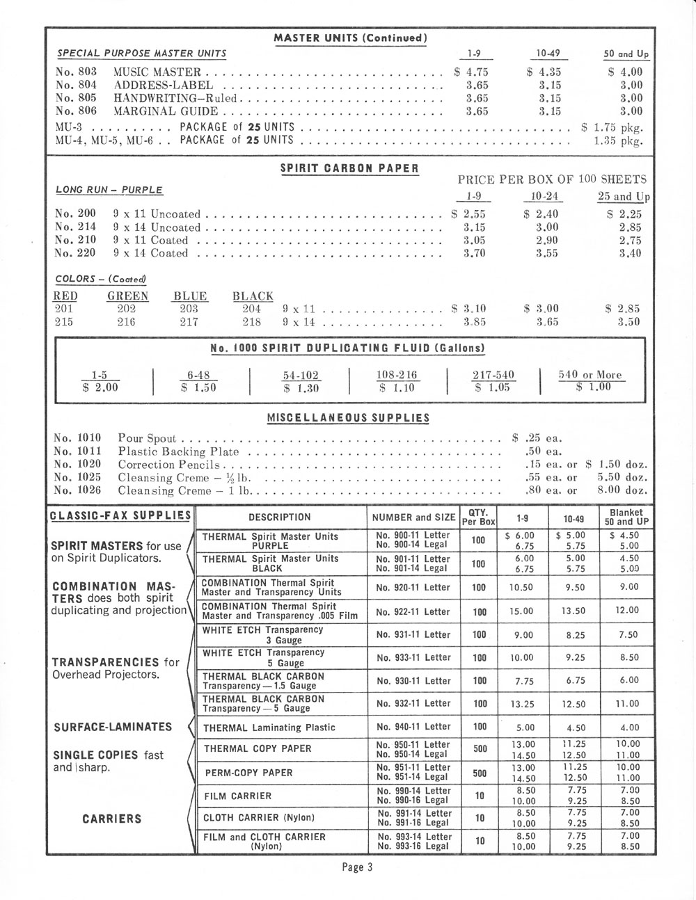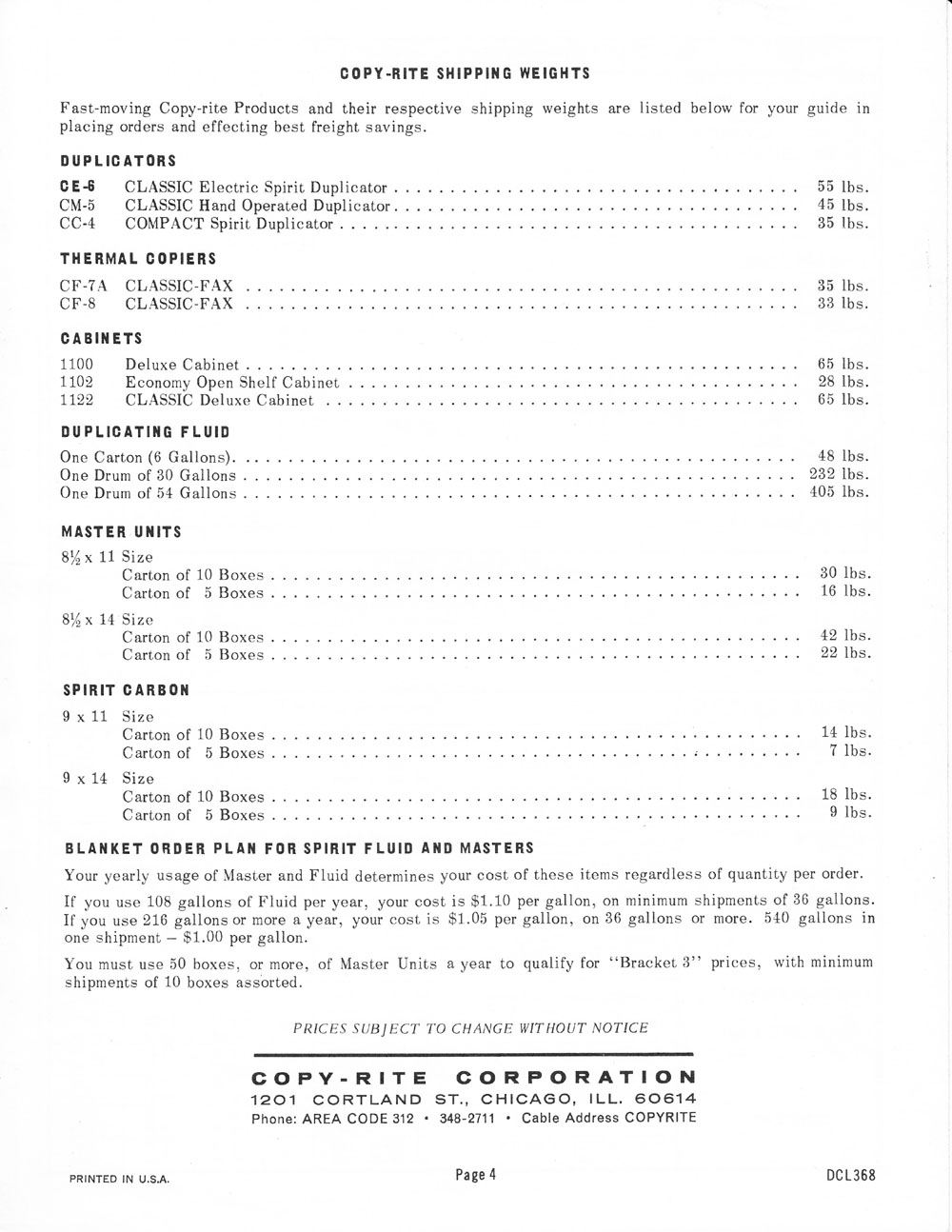 Copy-Rite 1968 Confidential Dealer's Cost List