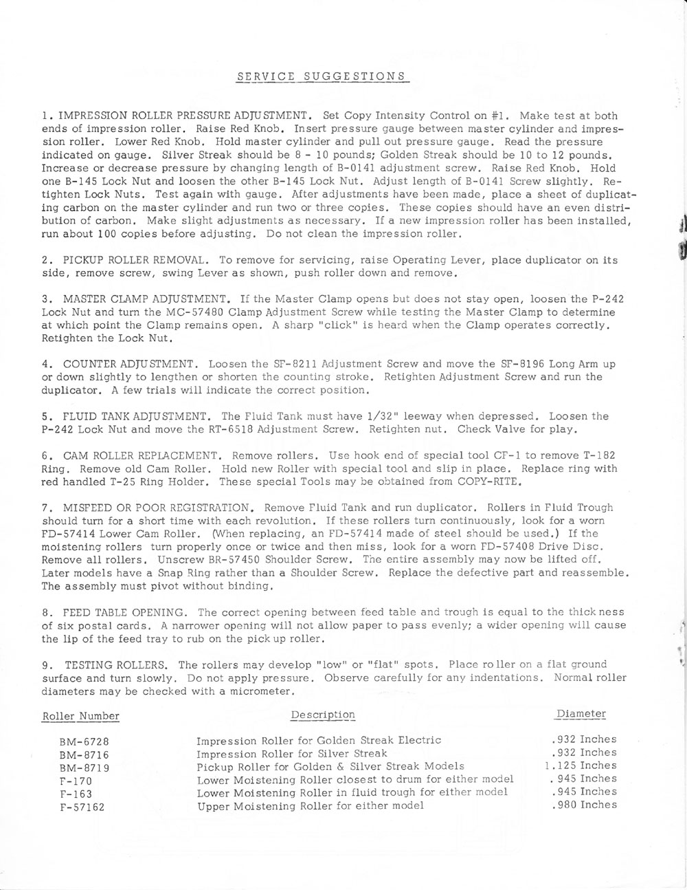 1959-1963 Copy-Rite Silver Golden Streak SS-1 GS-2 Maintenance Guide and Service Manual